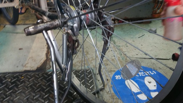 サイクルスポットでは、チェーンカバーを全部外したが、こちらのお店では、カバー後方部分しか外さなかった。