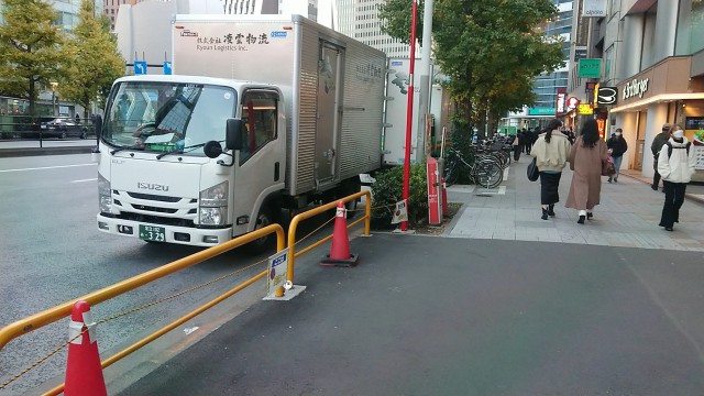 昨日、道路使用許可をとった占有エリアに「障害者特権」を悪用した塗装工ドライバーが青空路駐。