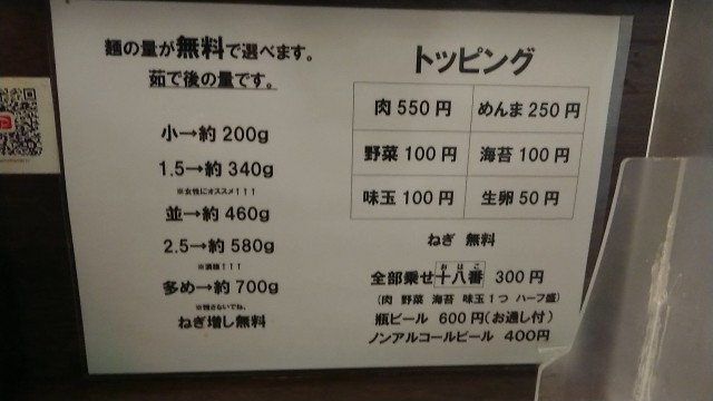十八番トッピング 250円→300円