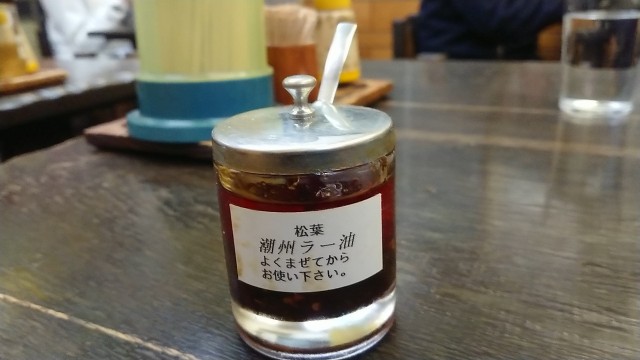 テーブル席のラー油は全て潮州ラー油なのに、カウンターだけは何故かS&B食品のラー油(笑)