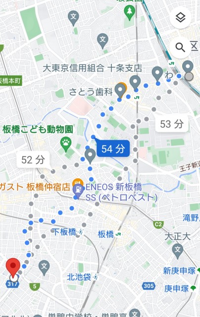 家→1現場目(板橋区)→2現場目(北区)→3現場目(台東区)→支社→家
