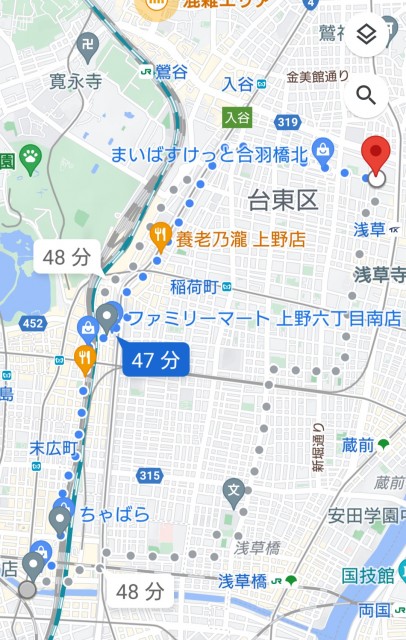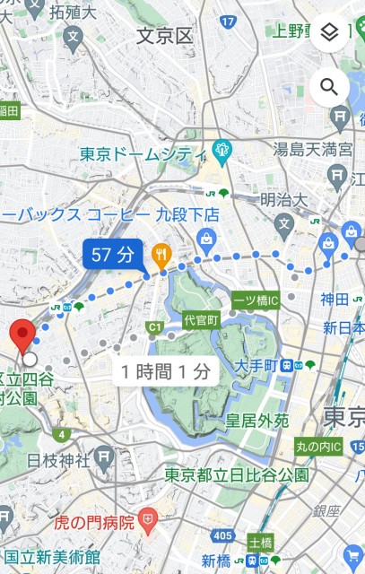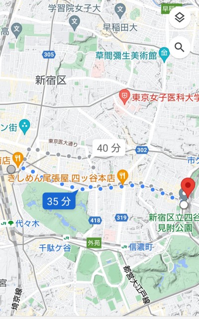 3現場目→万世橋3.6km→四ツ谷駅4.4km→支社2.7km