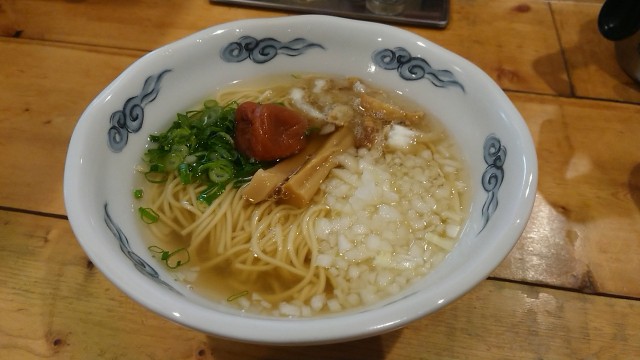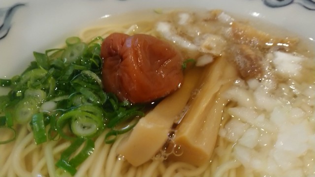 スープの旨味と、梅と塩分による甘味が口の中に残る。