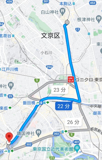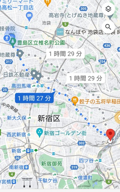 志村一里塚から一里塚通り経由で坂を下り三次公園を通り過ぎて坂を上りときわ台を通過してエンガ堀暗渠を使って千川駅へ。