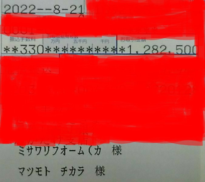 【日常】開業社会保険労務士の与信/現金最強(令和4年リフォーム費用総額3,135,468円支払完了) 2022/08/21