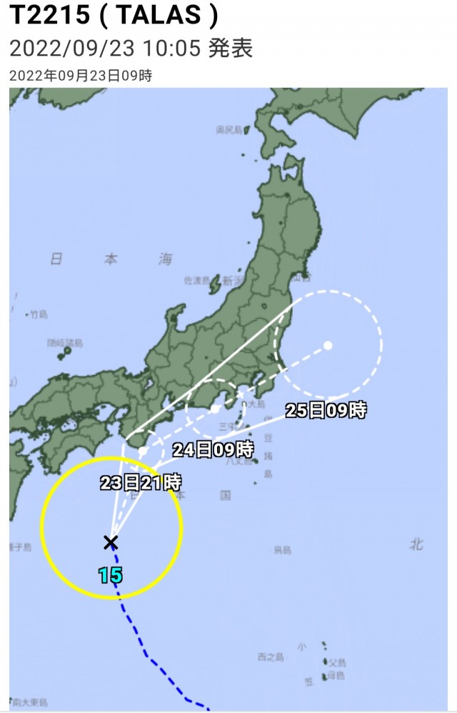 昨夕「台風になる」と言われていた熱帯低気圧が、今朝9:00の予報で台風15号タラスになった。