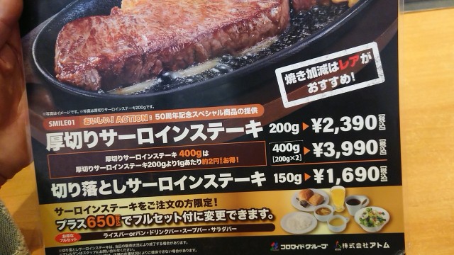 スタッフに聞いたら、グランドメニューのサーロインステーキは加工肉だとか