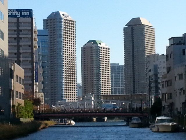 日本橋水門から亀島川を下り、隅田川方面へ(リバーシティを臨む)