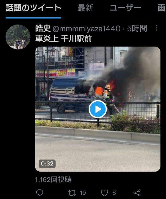 事故ではなく、タイヤ炎上による車輌火災で、千川通りが大渋滞したらしい。