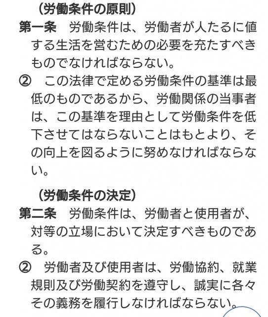 だが、同法第2条にあるよう、労働条件は、労使双方が対等の立場で決定し、労働協約、就業規則、労働契約を遵守し、誠実にその義務を履行しなければならないのです!