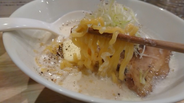 鶏魚介出汁(鶏とアサリ)をベースに、ミルクとバターを合わせた濃厚スープ。