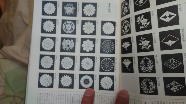オレも『日本家紋総覧』(新人物往来社)なる書籍を所蔵しているが、井筒紋と菊紋の複合家紋だから、そのものドンピシャがない!