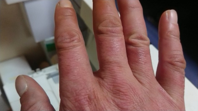 オレの手の甲の霜焼け。