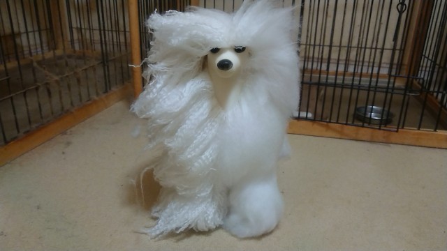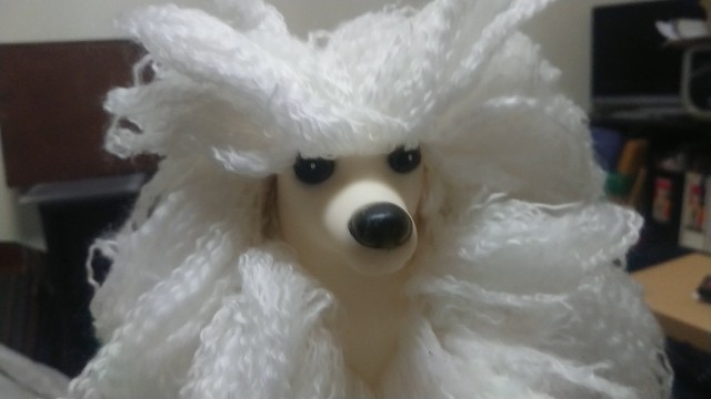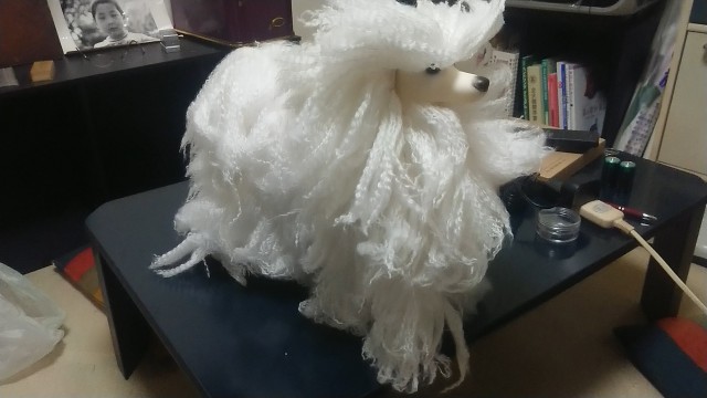 ウィッグ(マネキン)の左半分の毛繕いだ!