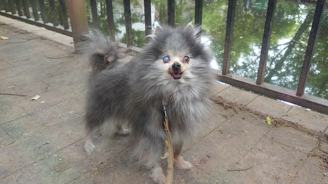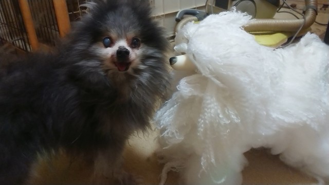 散歩から帰り、ウィッグとご対面したそら!