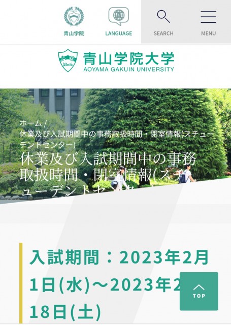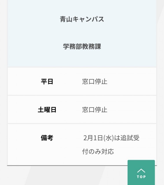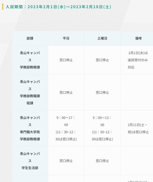 青山学院大学学務部の窓口業務停止(2/1~18)