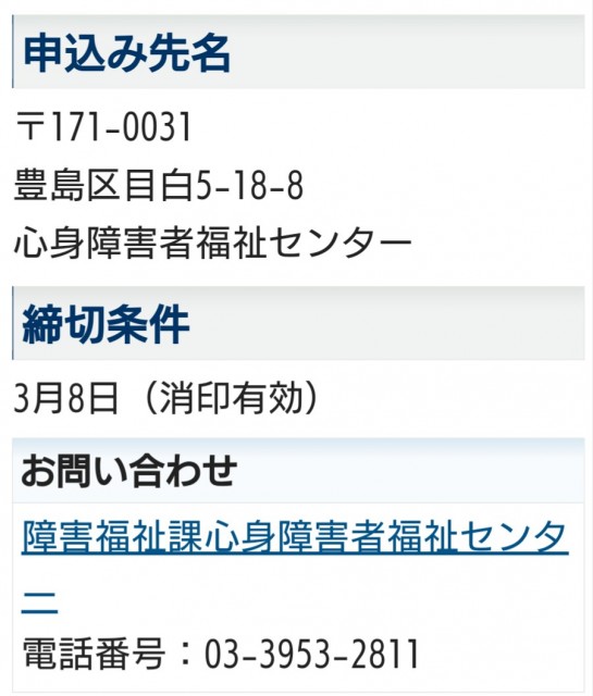 〒171-0031 豊島区目白5-18-8 心身障害者福祉センター宛