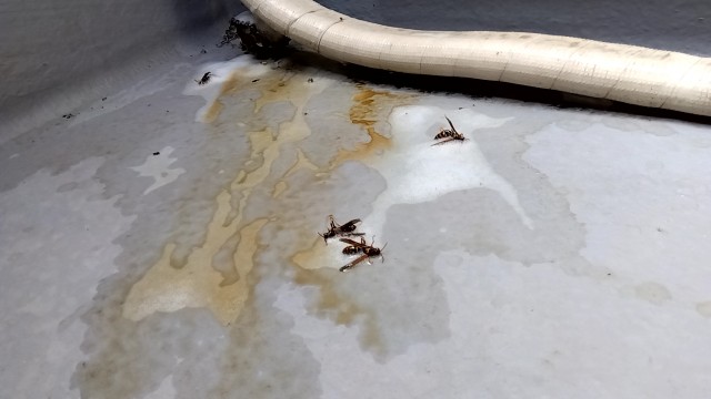蜂の巣に水をかけたら幼虫が2匹流れ出した(撮影していない)