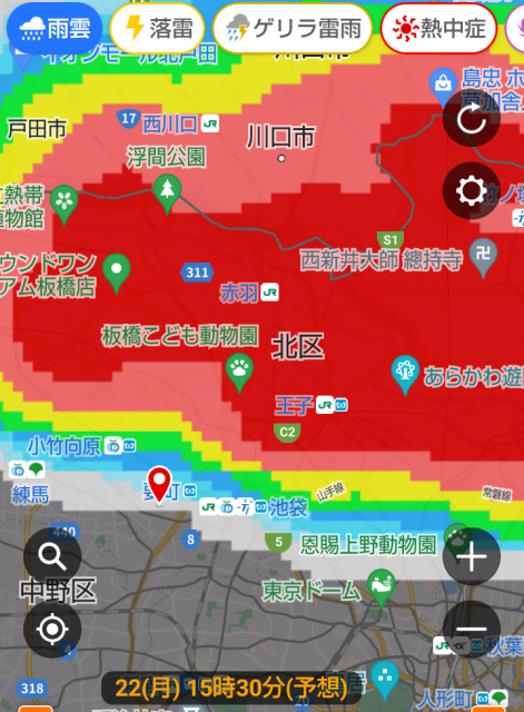 そして、都議会議事堂に向けてちょうど外出する時間帯に雷が乱発し始めた。