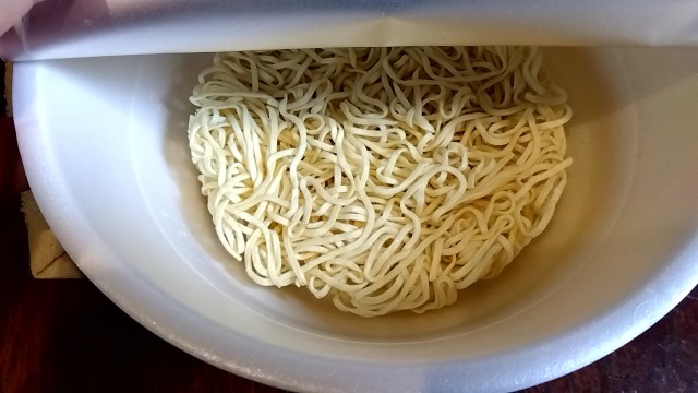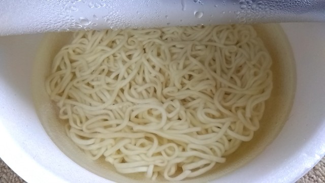 乾麺は沸騰した熱湯を入れて5分寝かす。