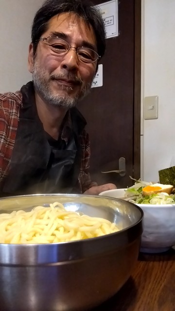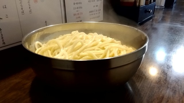 ヤケクソのように麺700gがボウルで提供されたよ。