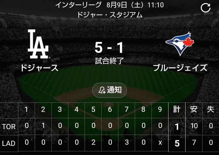ブルージェイズVSドジャース試合結果
