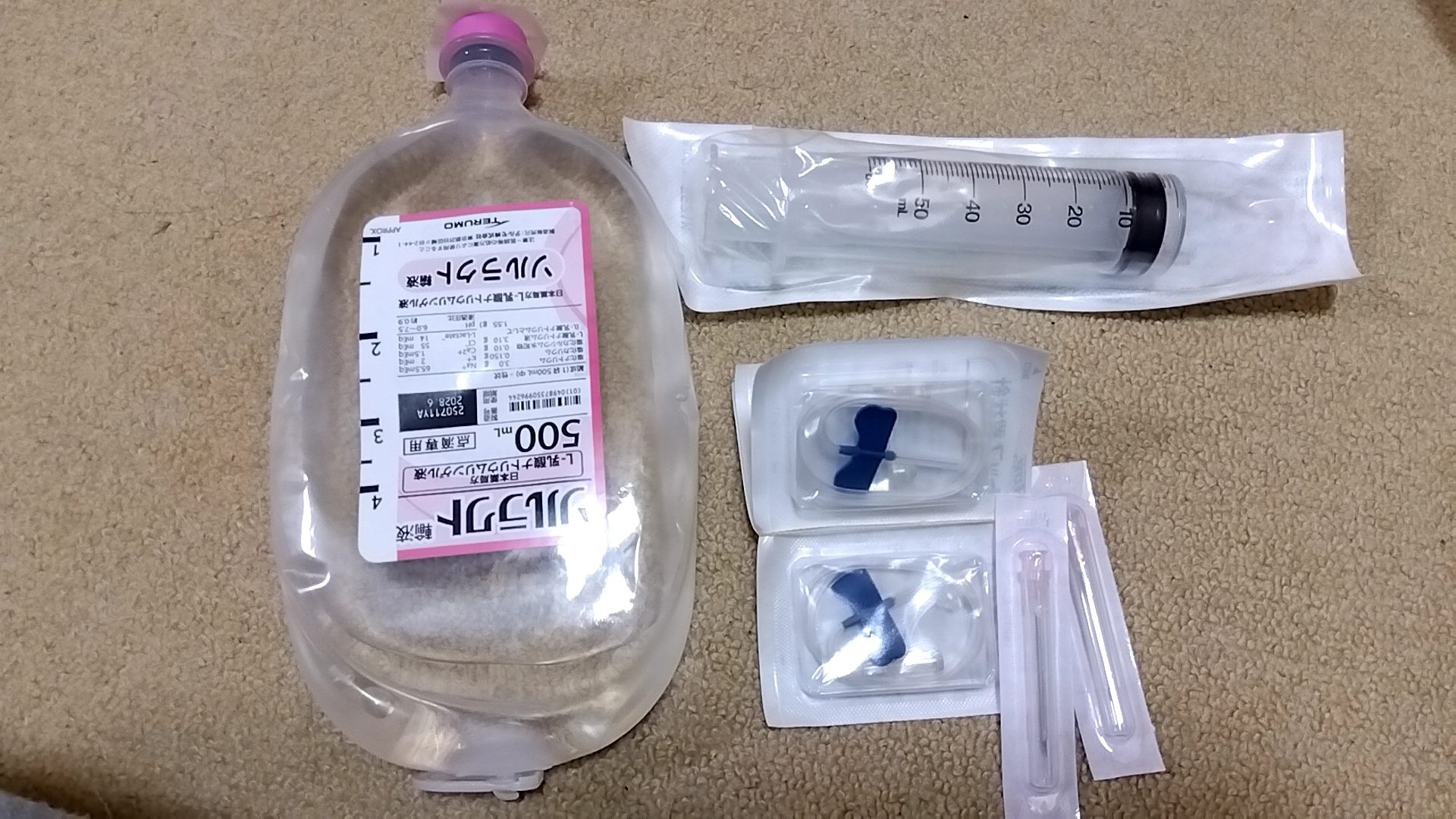昨日、院外処方して貰った点滴キットを使って、夕方、仕事から帰宅後、プリンスにソルラクト輸液の皮下注射を開始した。