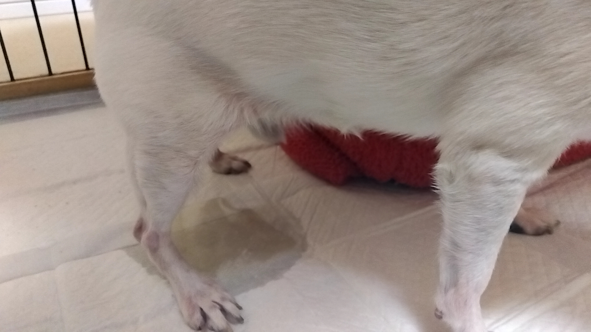 帰宅し、ムックのかまくら(寝床)から出てきて放尿lol