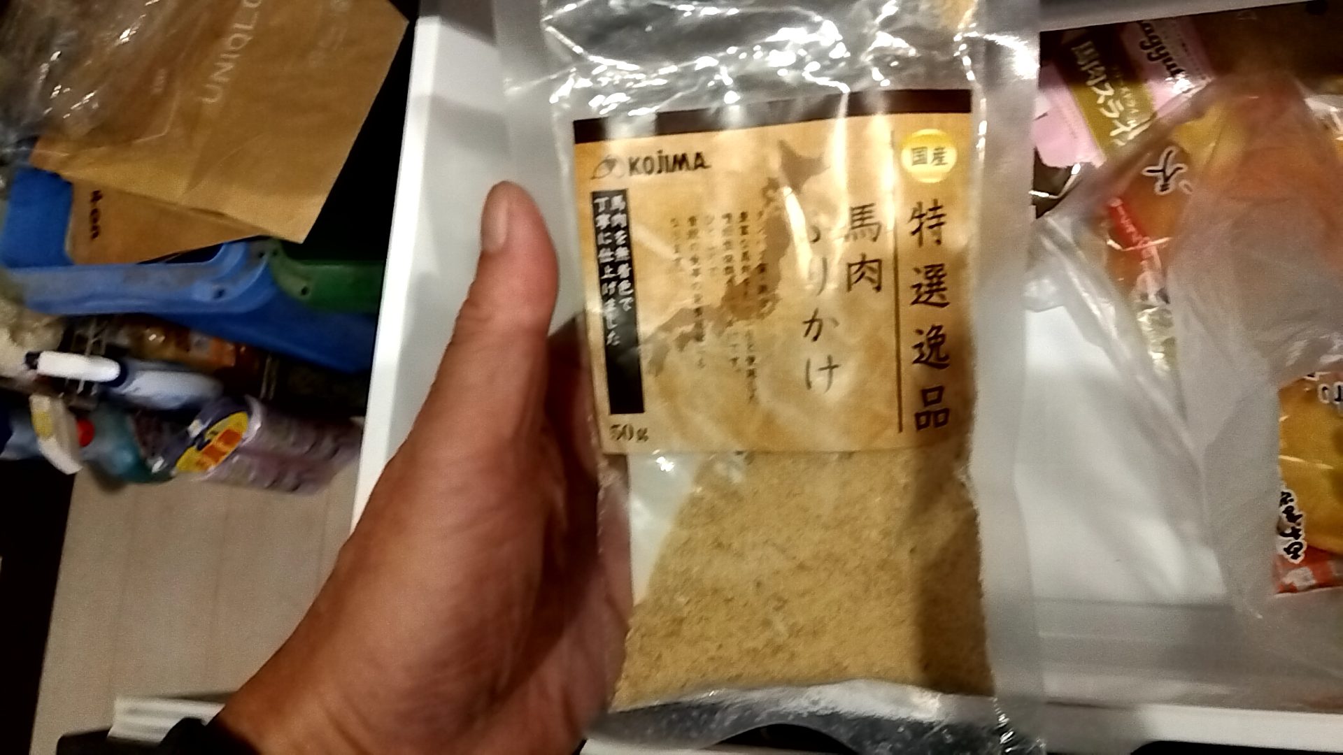 夕方、帰宅したら、馬肉ふりかけを完食。