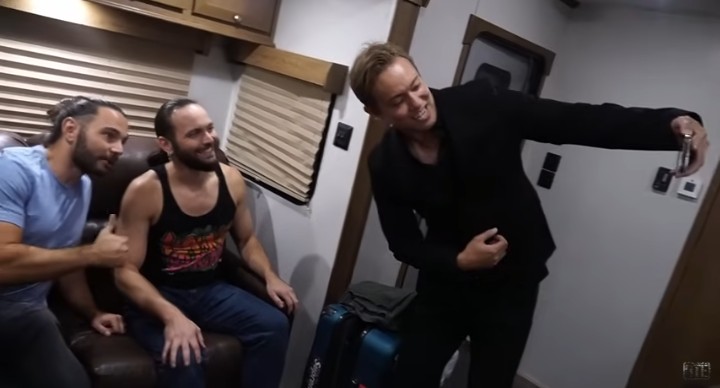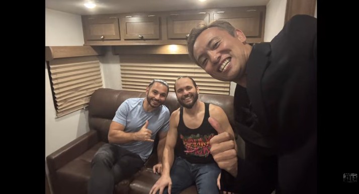 アレキサンダーらがジュラシック・エクスプレスをKOした後、トレーラーハウスから話し合いを終えたオカダ&ヤングバックスが出てきた。