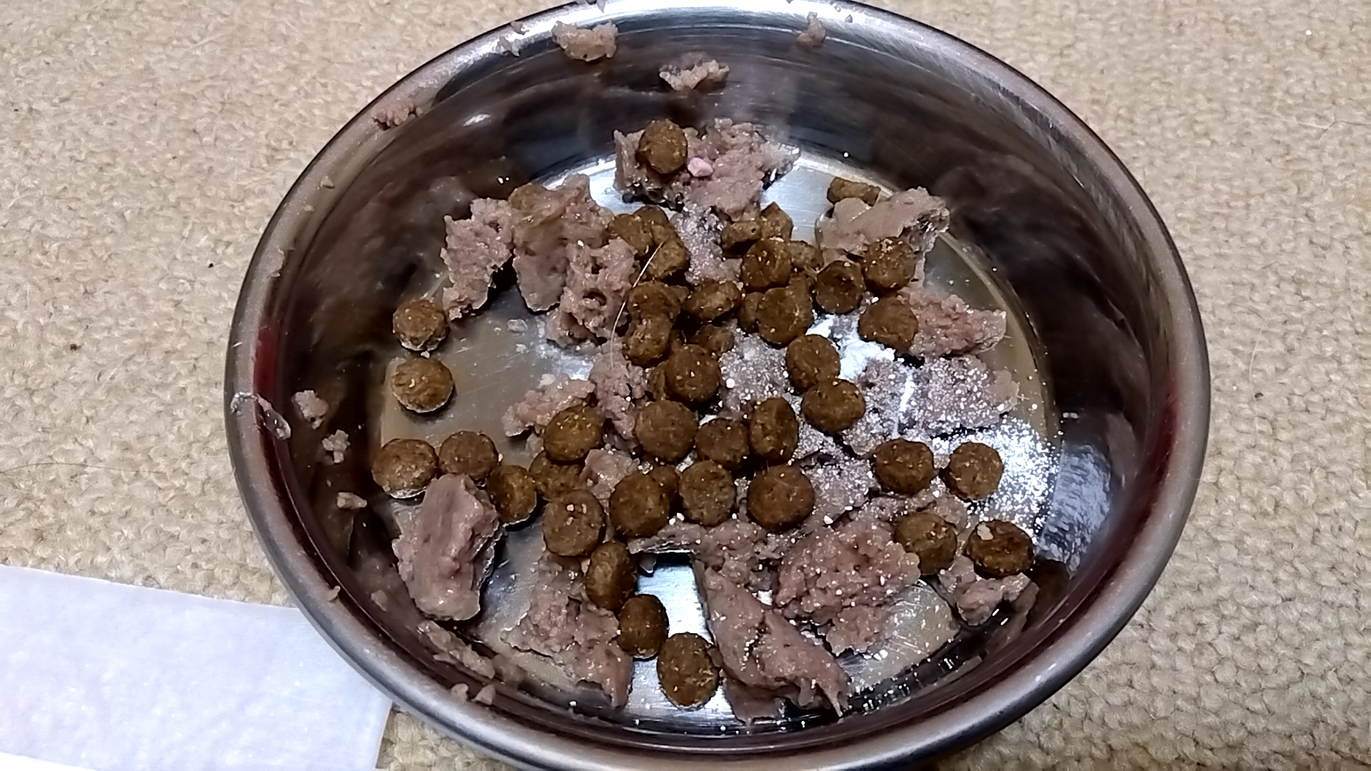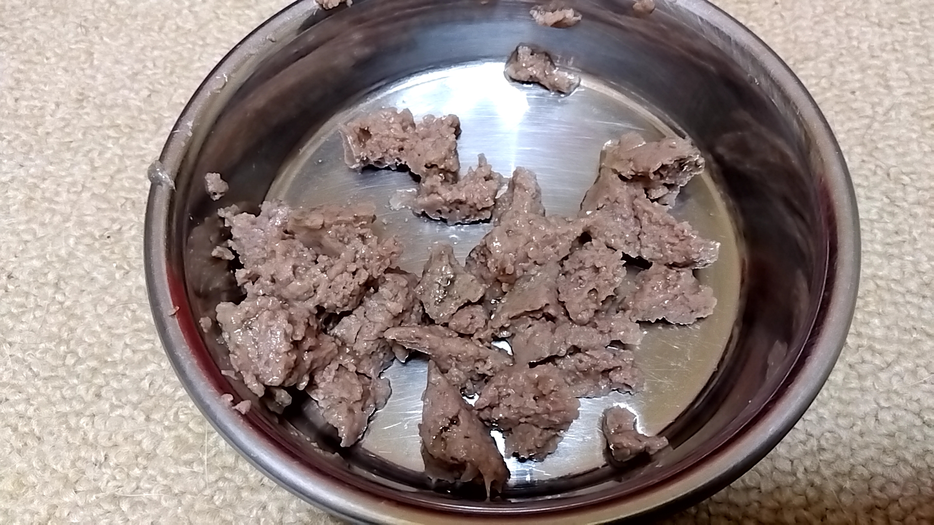 ウェットフード(ビーフ)が気に入ったらしくバクバク食っていた。