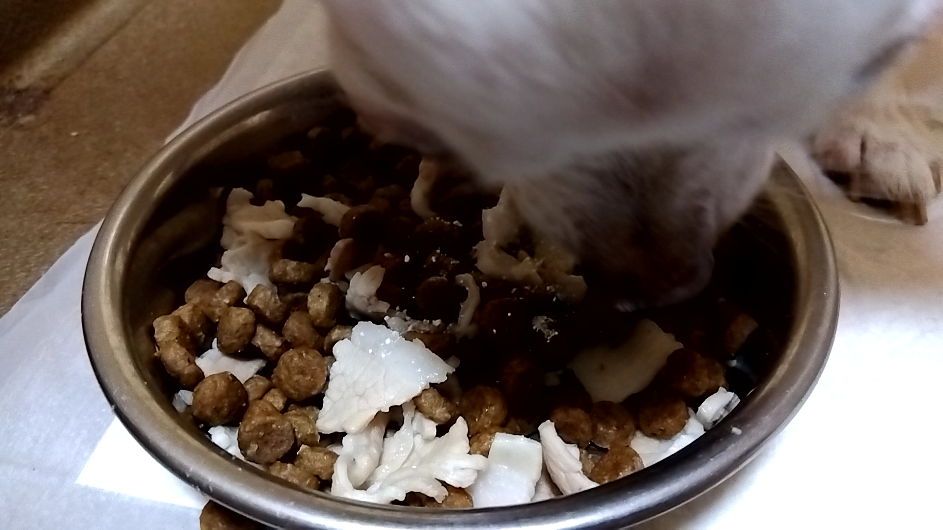 ウェットフードがなくても、主食のドライフードを完食してくれるか、その確認を兼ねた給餌でしたが見事に平らげてくれた。