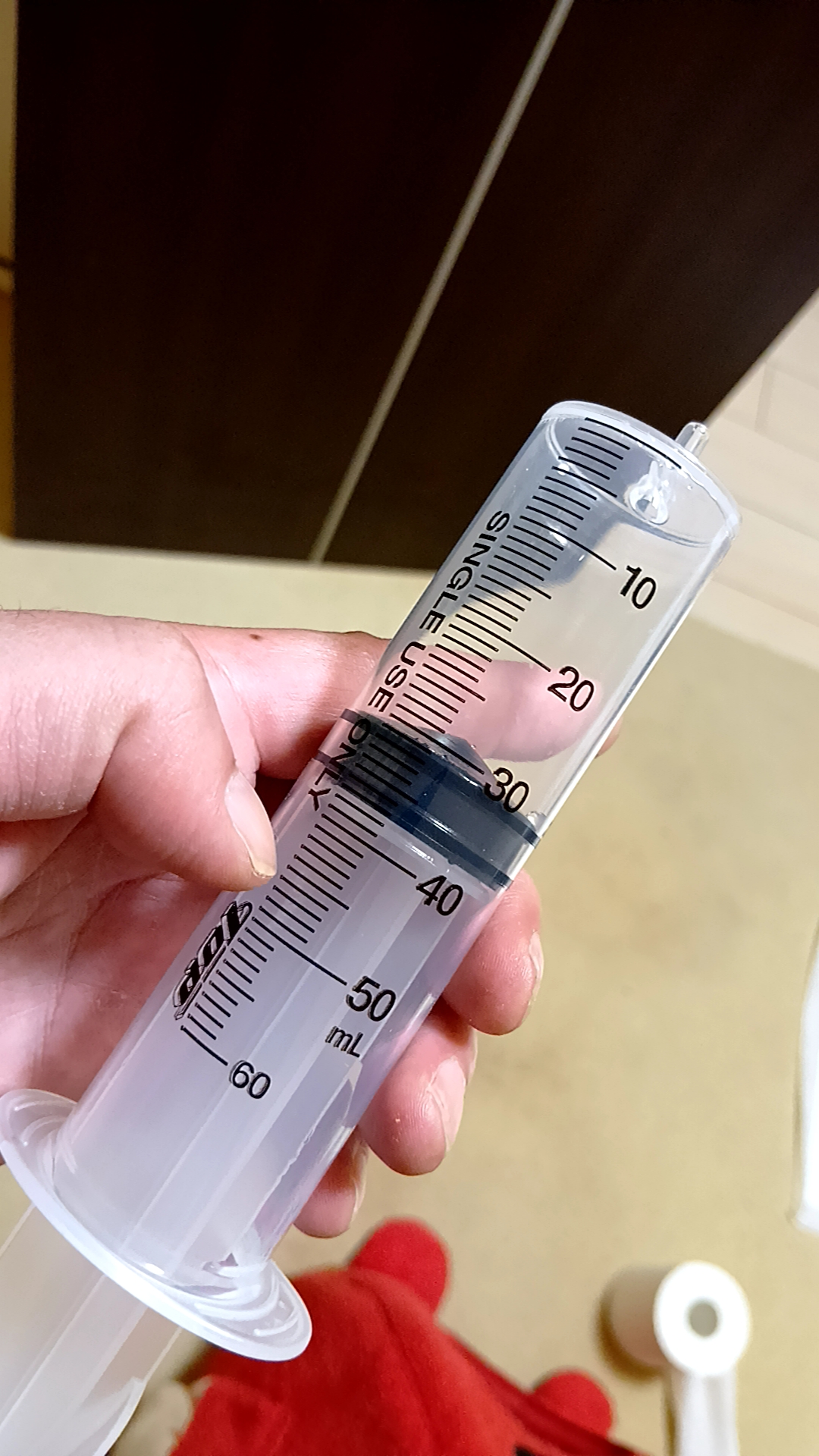 獣医には、もし、点滴効果が切れてしまいプリンスが脱水症状(食欲不振等)を再発したときは「毎日、点滴するなら半分の30mlずつに分けて様子を見て欲しい」とアドバイスされていたので、指示通りやってみることにした(点滴は明日60ml投薬予定日だったので、今日と明日30mlずつ2回に分割してソルラクト輸液を注射)。