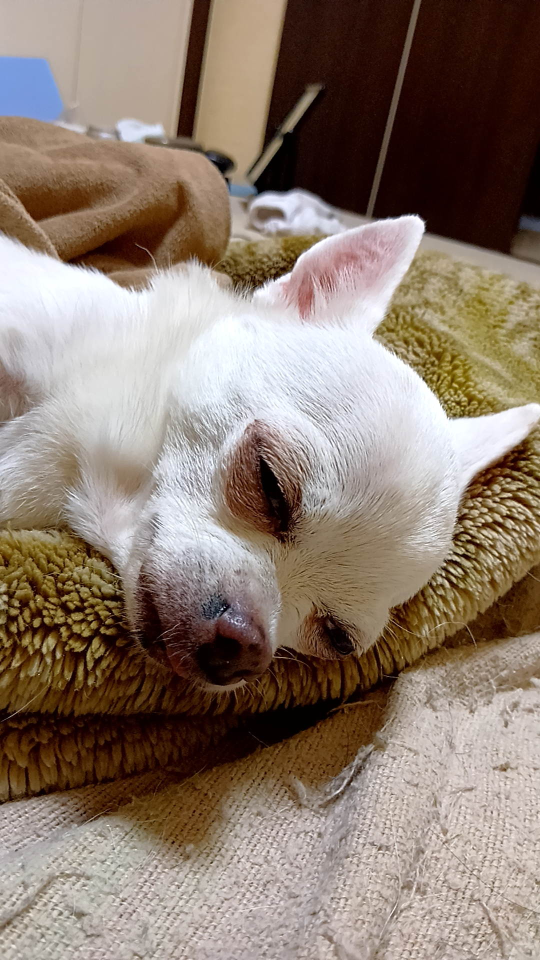 ご飯もある程度は食べたし、横になって寝ている(調子が悪くなってからは、呼吸が苦しいせいで、うつ伏せて寝るようになっていた)