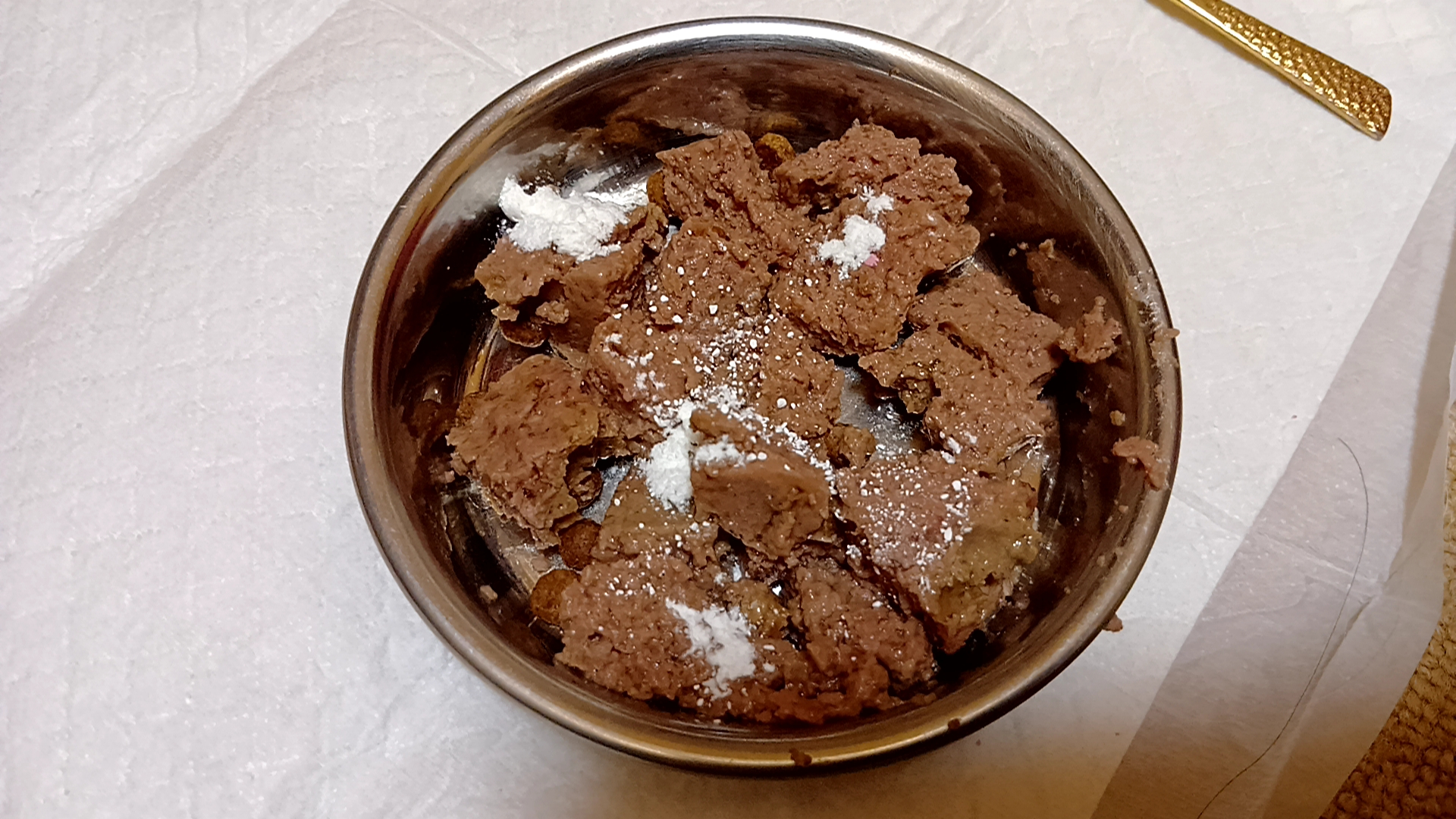 ウェットフードの下に、実験的にドライフード15粒(2g)を忍ばせて、食べるか確認した。