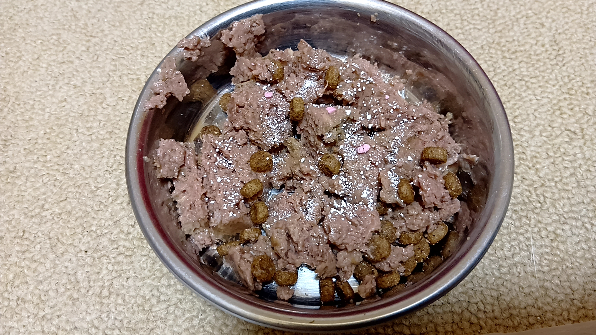 皿をペロペロ舐め、足りないみたいだが、何時もウェットフード25g追加すると、食べ切れない。
