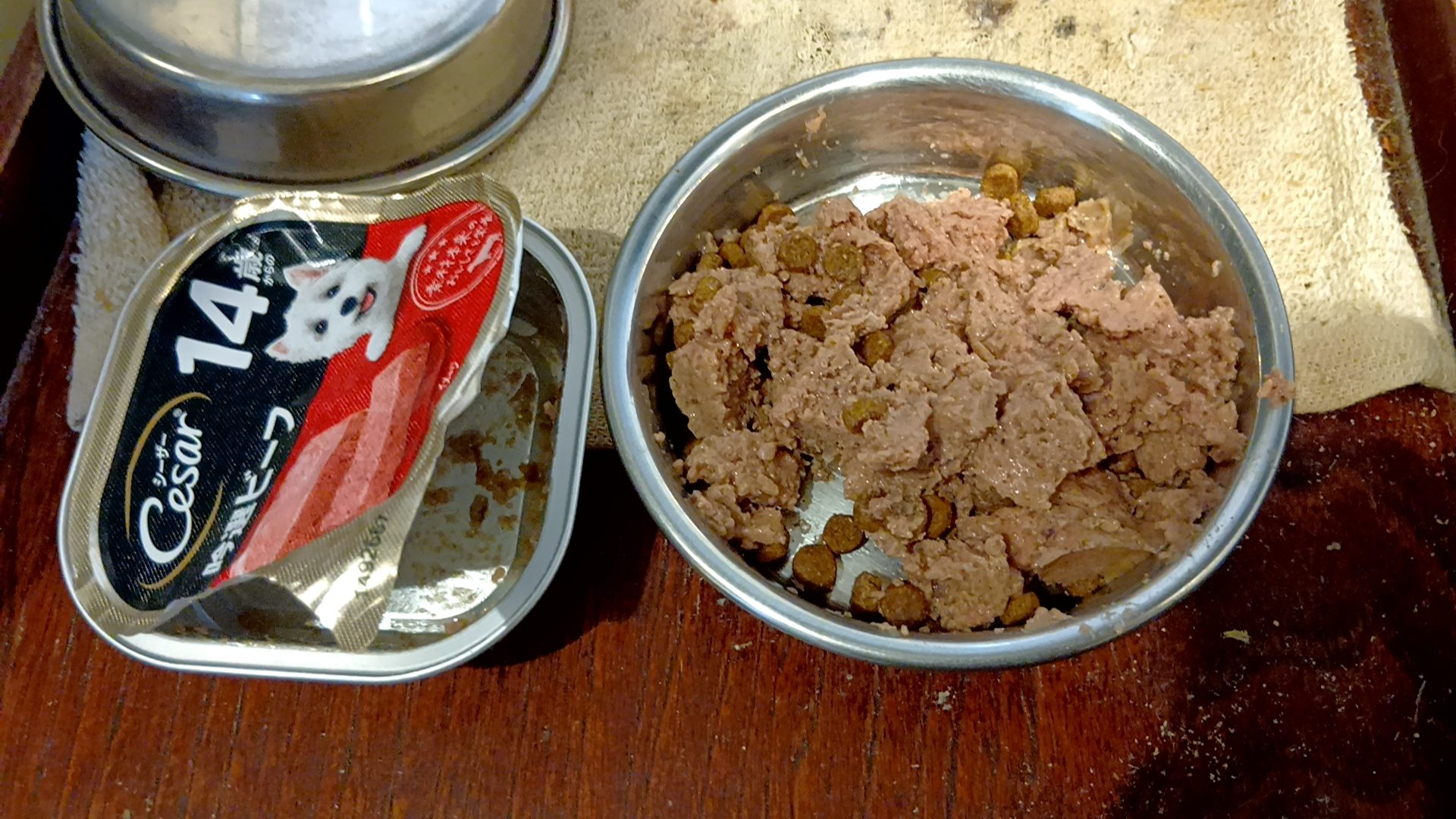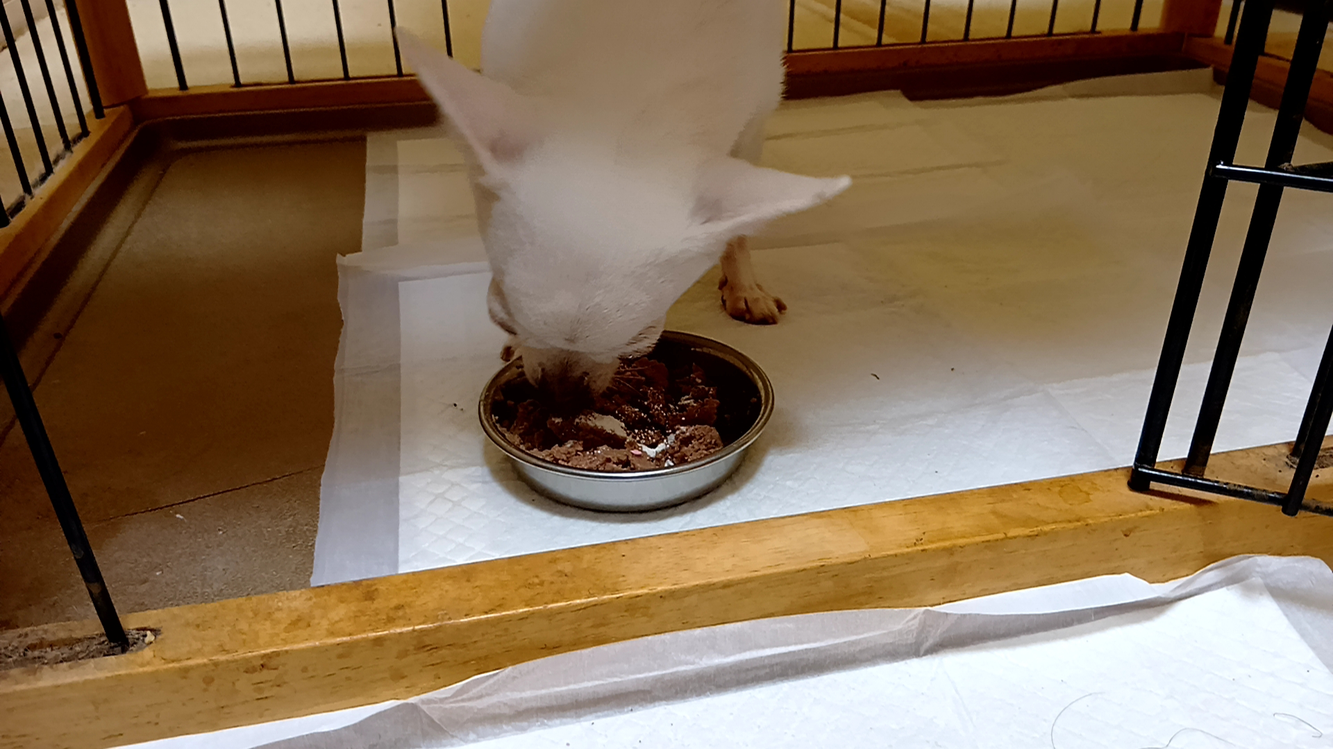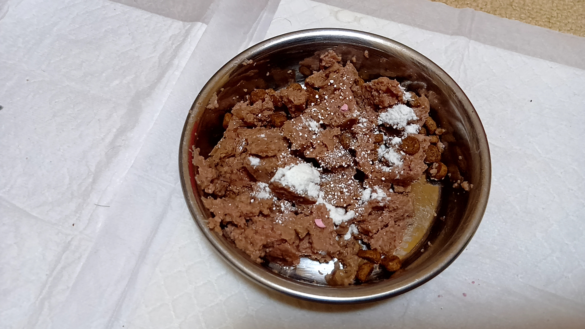 ※下痢しているので、消化しやすいウェットフードの比率を増やし、食事量を制限している