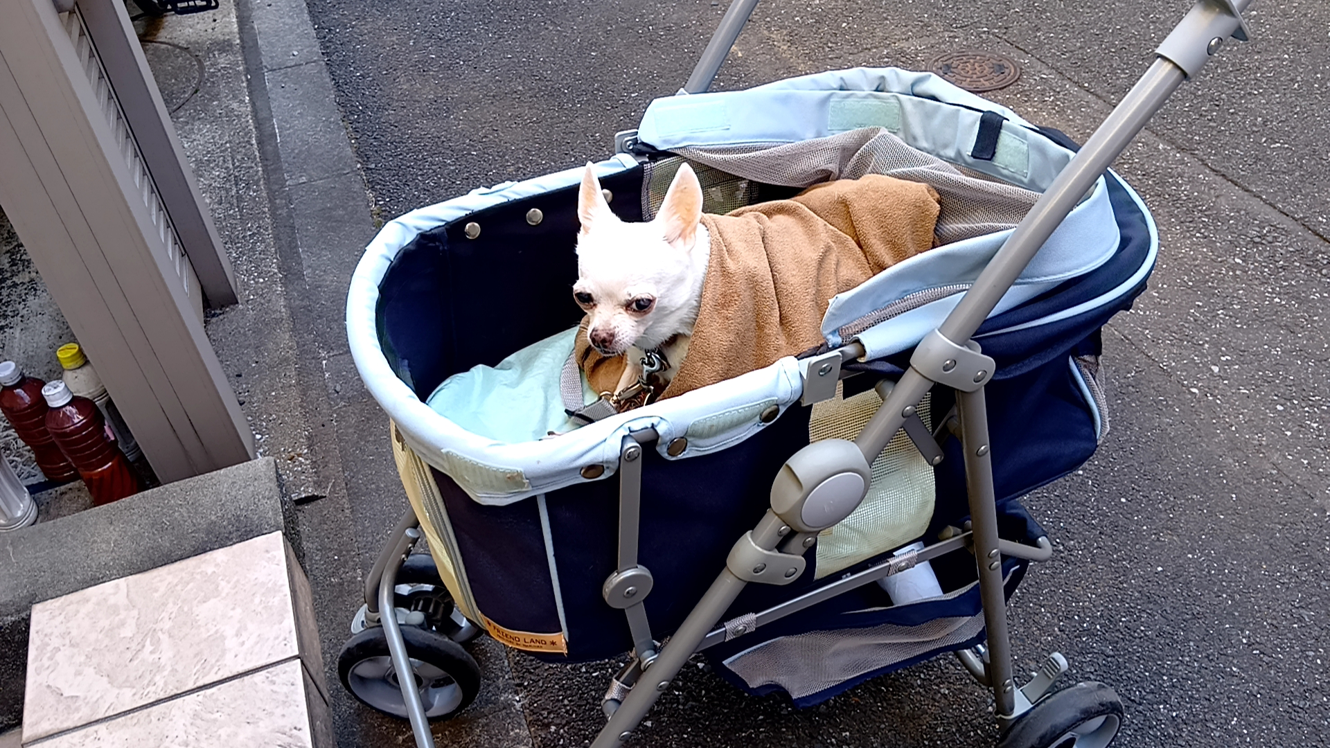 服を着替えて、ペットカートを面に用意して、プリンスのもとに。