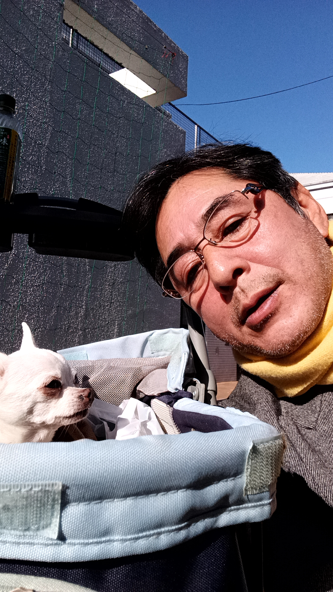気温9℃だが、風のない快晴の朝だったので、プリンスをタオルケットに巻きつけ動物病院に出発!