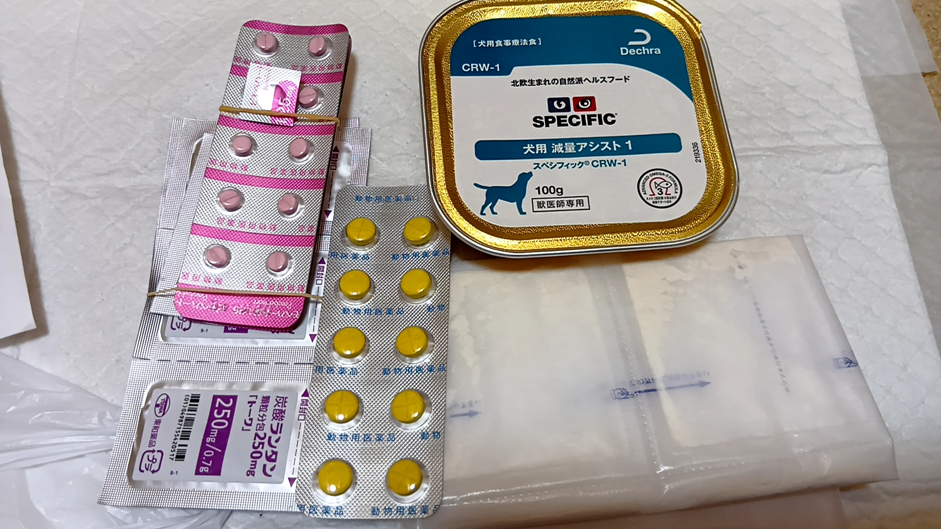 ③ピモベハート(三尖弁閉鎖不全症)、炭酸ランタン(腎臓病)のほか、整腸剤10日分(粉薬と錠剤)を毎食後2回投薬すること