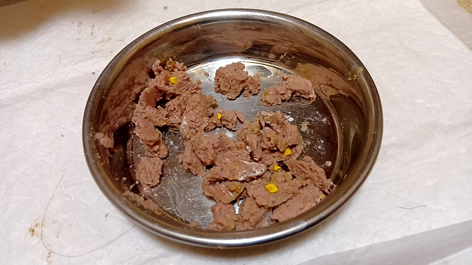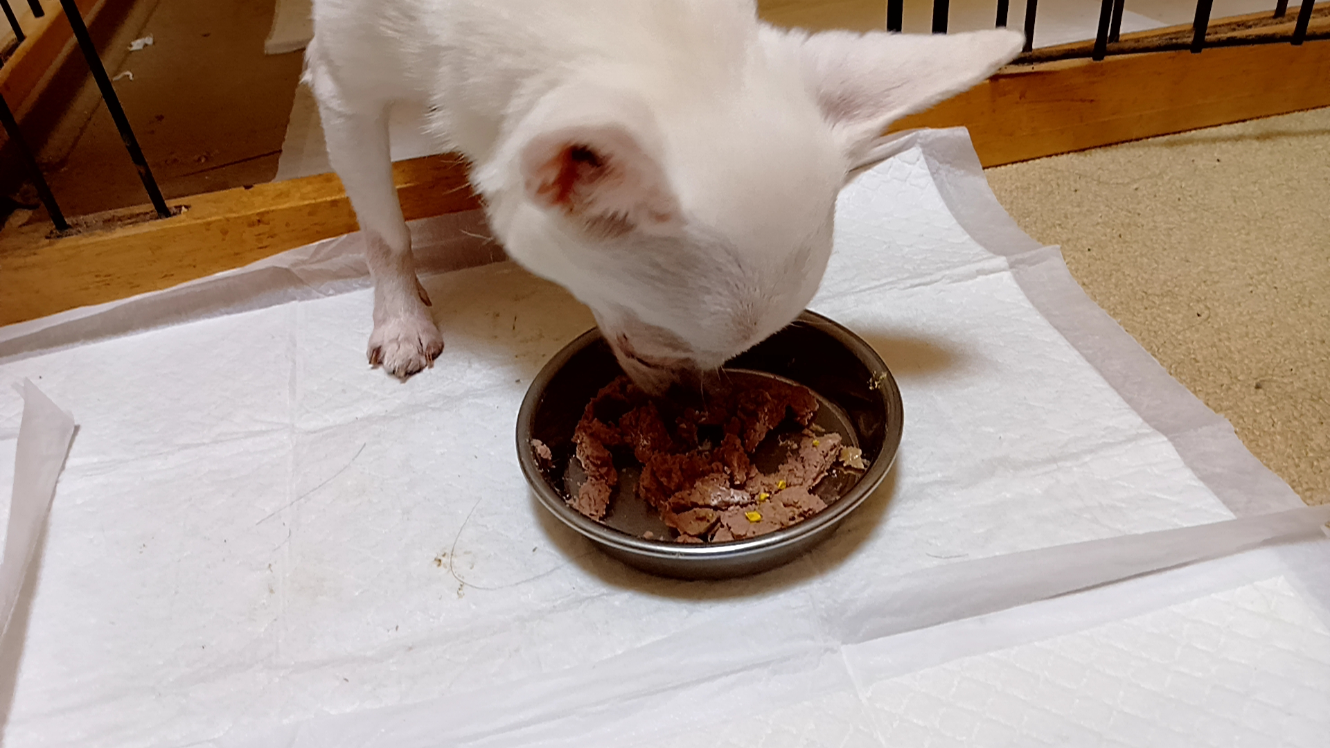 帰宅後、少ししてから、本日渡された療養食と、処方された飲み薬を与えることにした。
