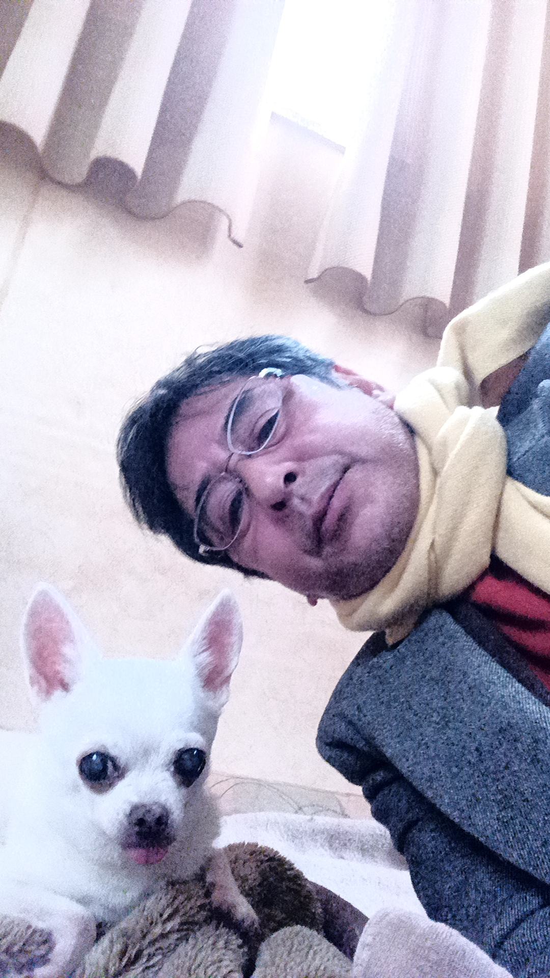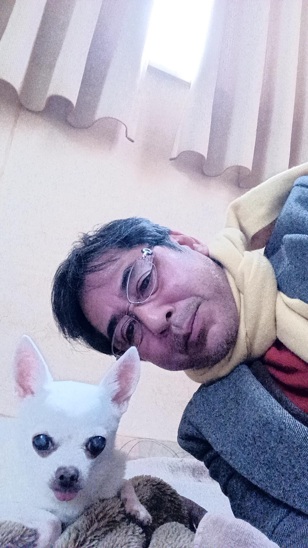 目を開けたプリンスは、白内障で視力が悪いので、まずは、オレの香水シャネルN°5の匂いを嗅いでいる。
