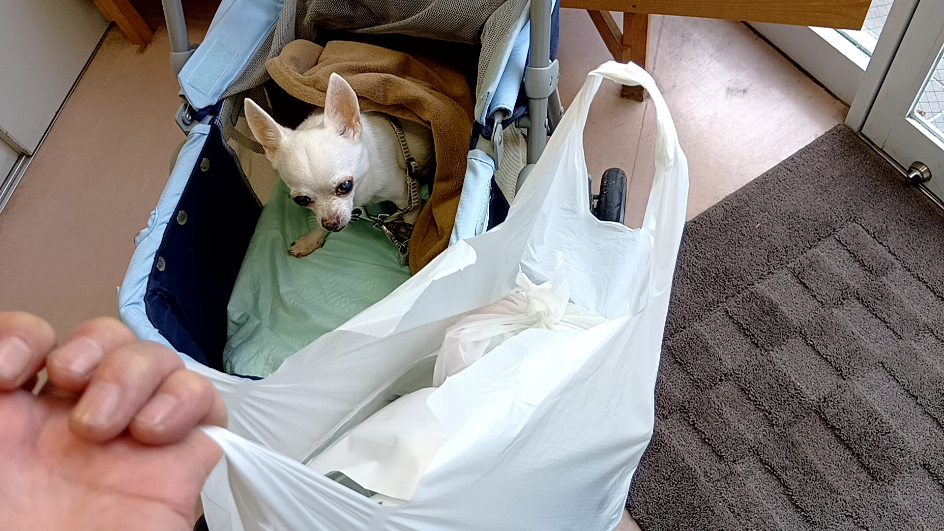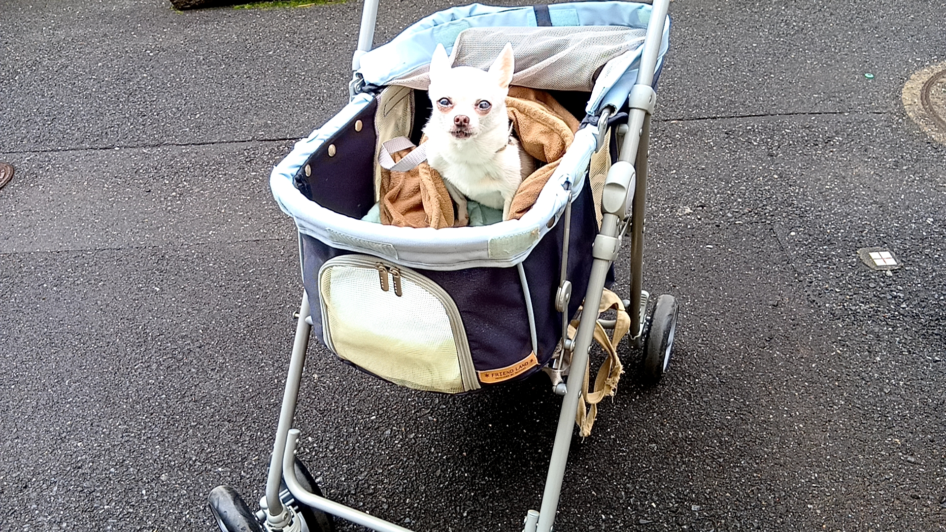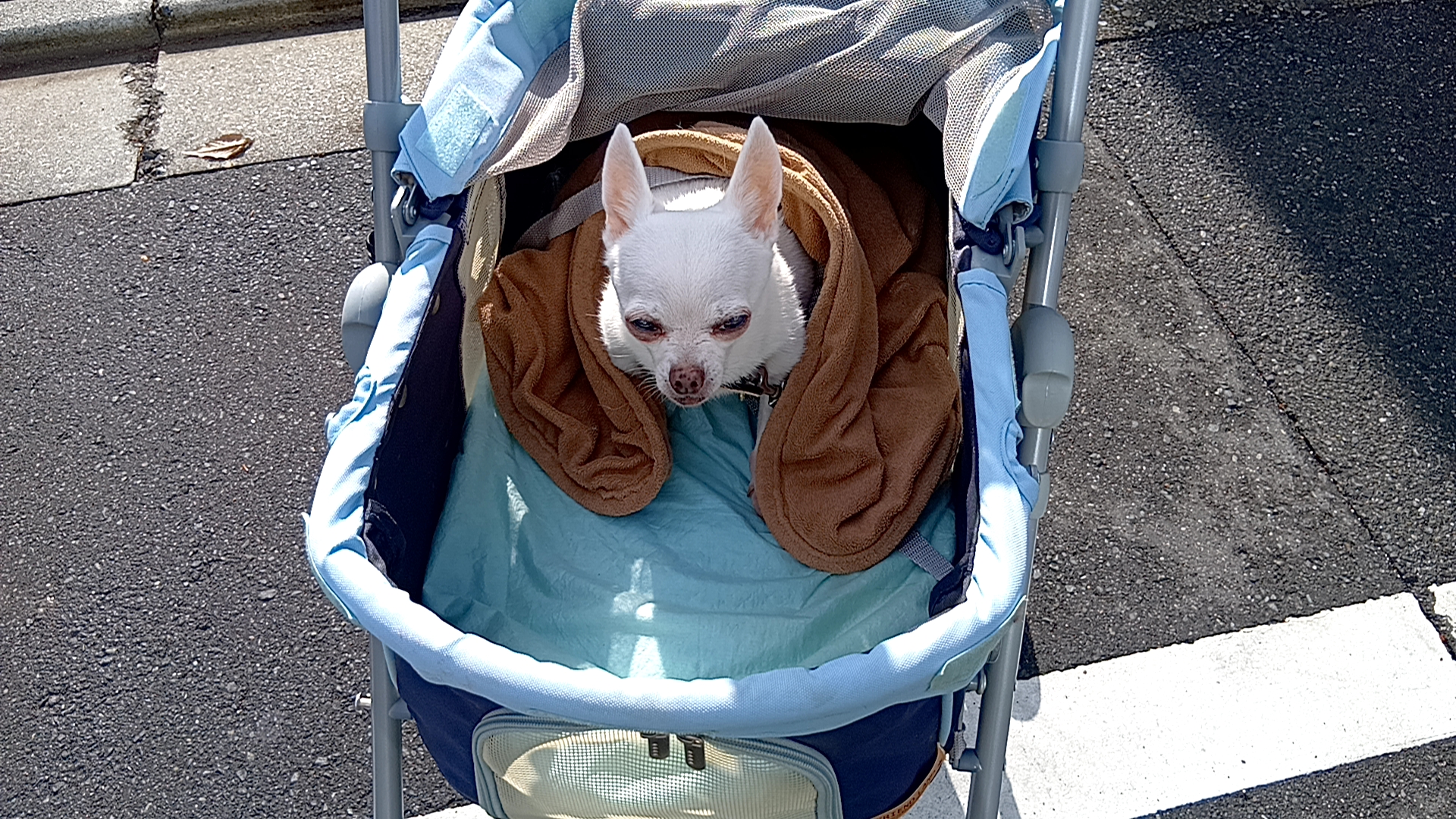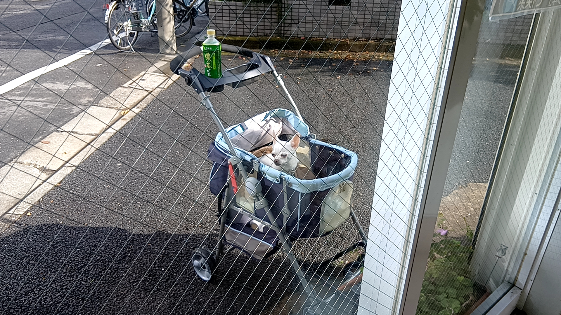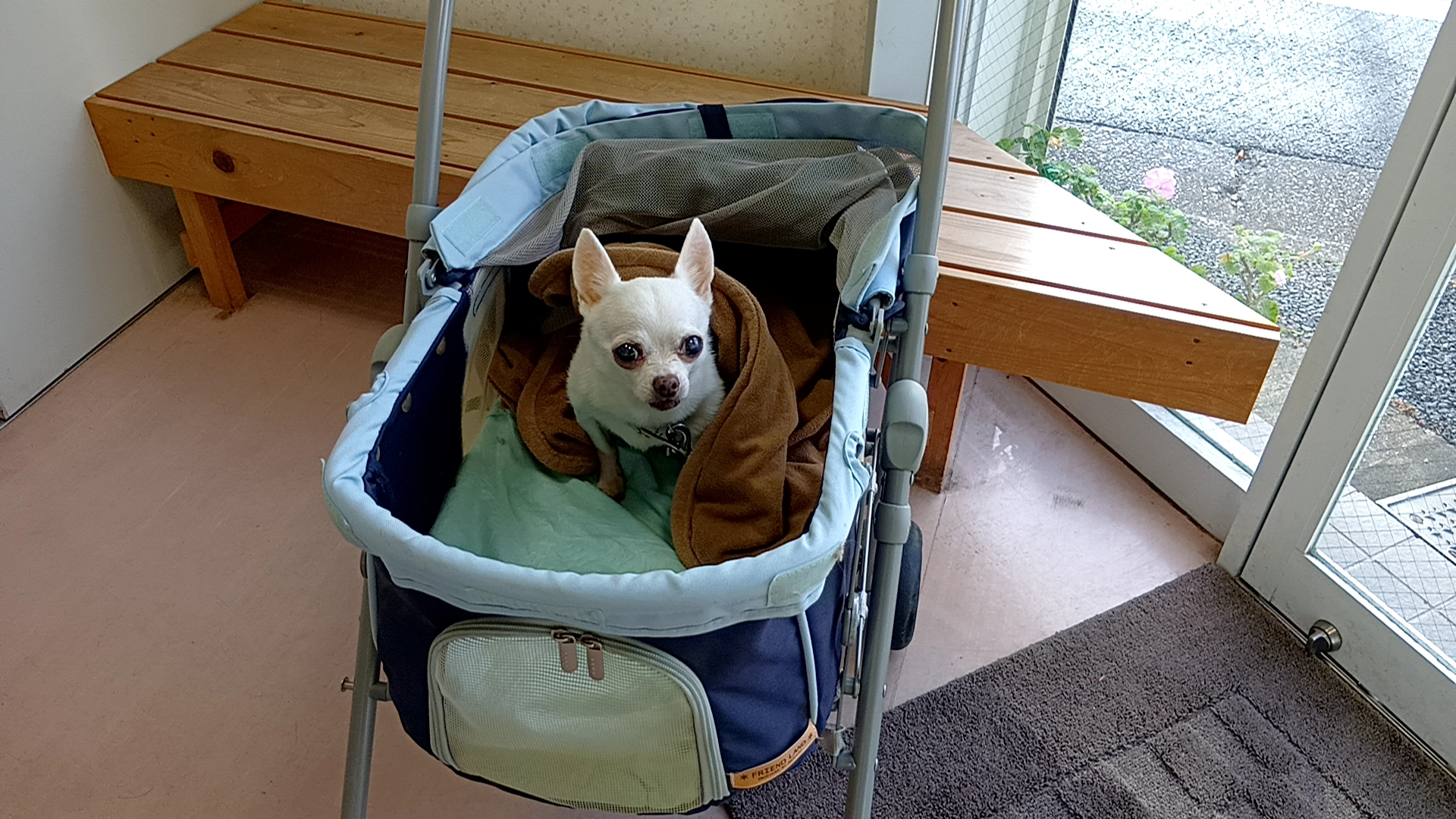 今日は散歩中に丸まって寝てしまうこともなく、終始おすわりして、外を眺めていた。