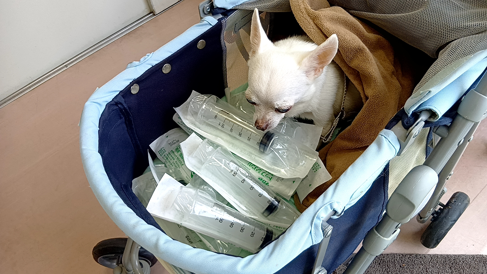 ディスポシリンジが山盛りなので、プリンスのいるカートに入れながら数合わせしていたら、プリンスが埋もれそうになっていた!