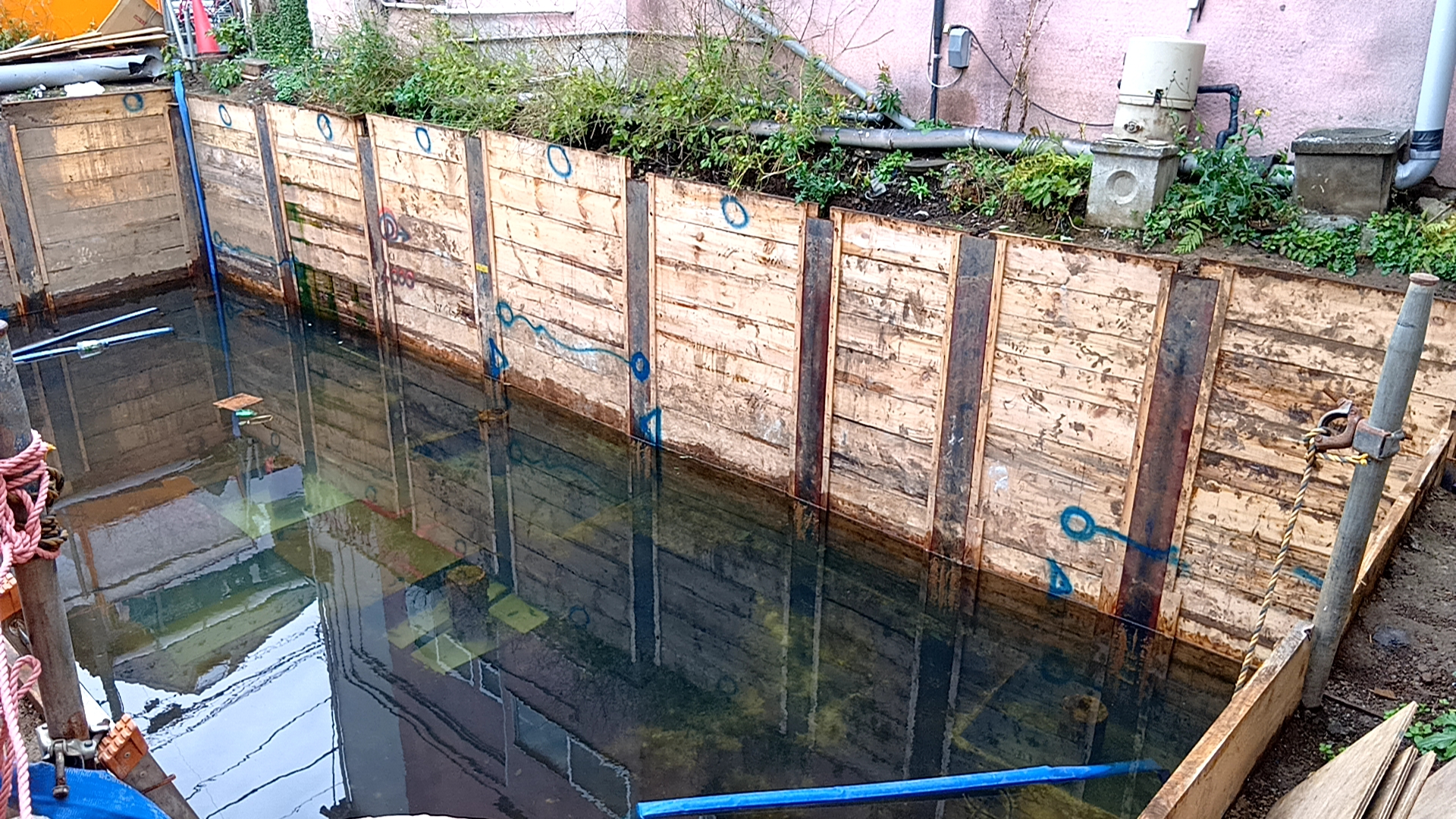 湧き水(エンガ堀)が溢れて来るため池になっており、宅地建設できない状態のまま工事が止まっているようだ。