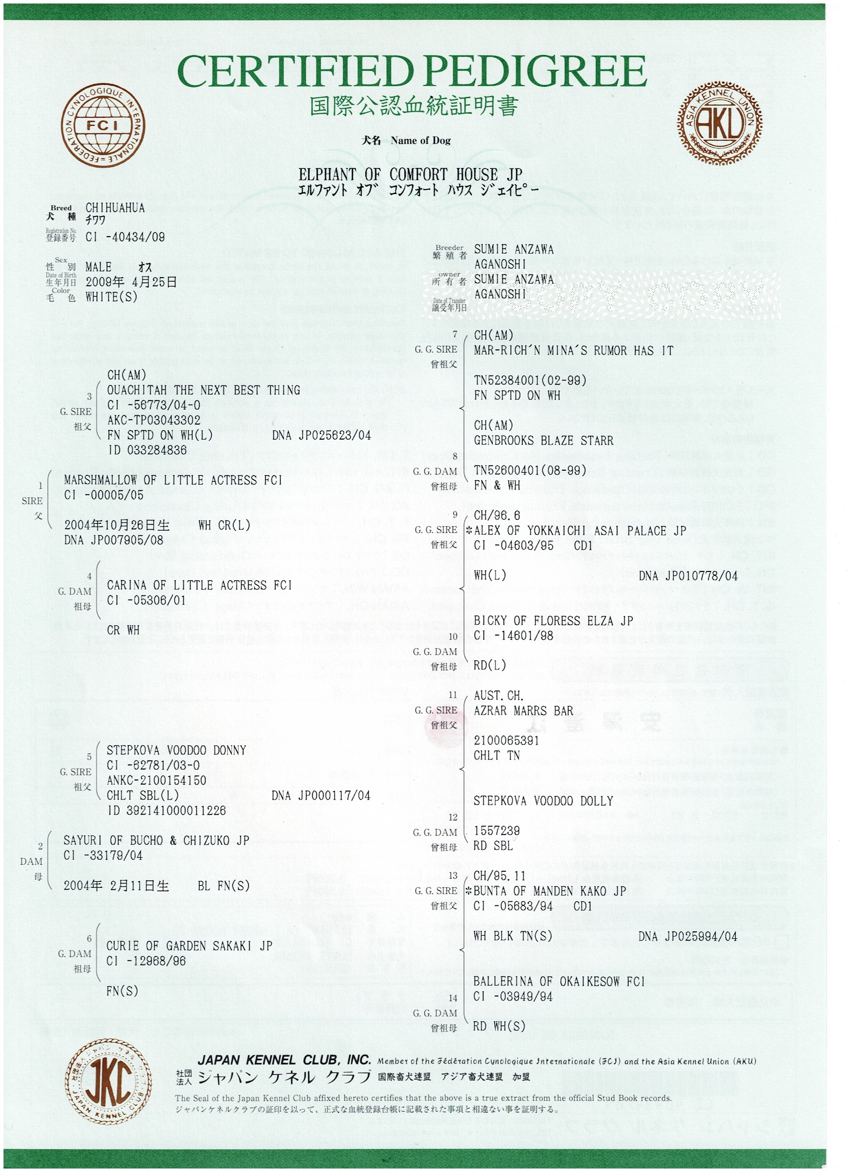 上記血統書からブリーダーを検索クエリすると、ブリーダーHPにはプリンスの親の画像がアップロードされていた。