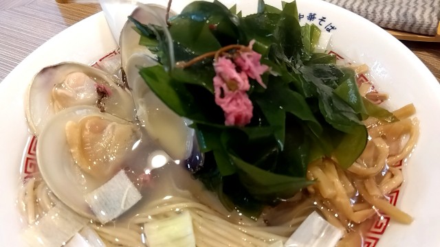 【中華そば六感堂】第4食 グリル百舌の女将さんに見つかった!(汗)…ハマグリと宇部産わかめを使った限定らーめん1600円(わかめそば) ★2025/3/30(日)12:00 2025/03/30