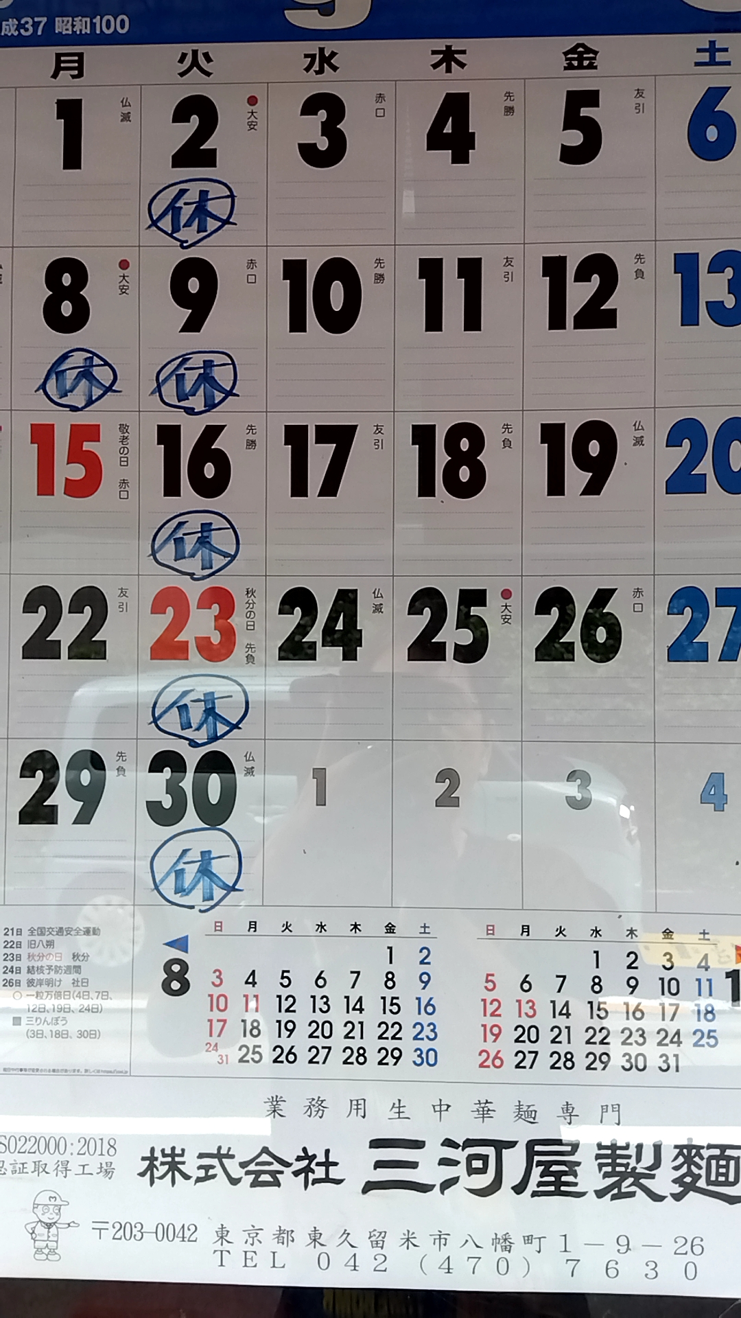 今月の営業スケジュール