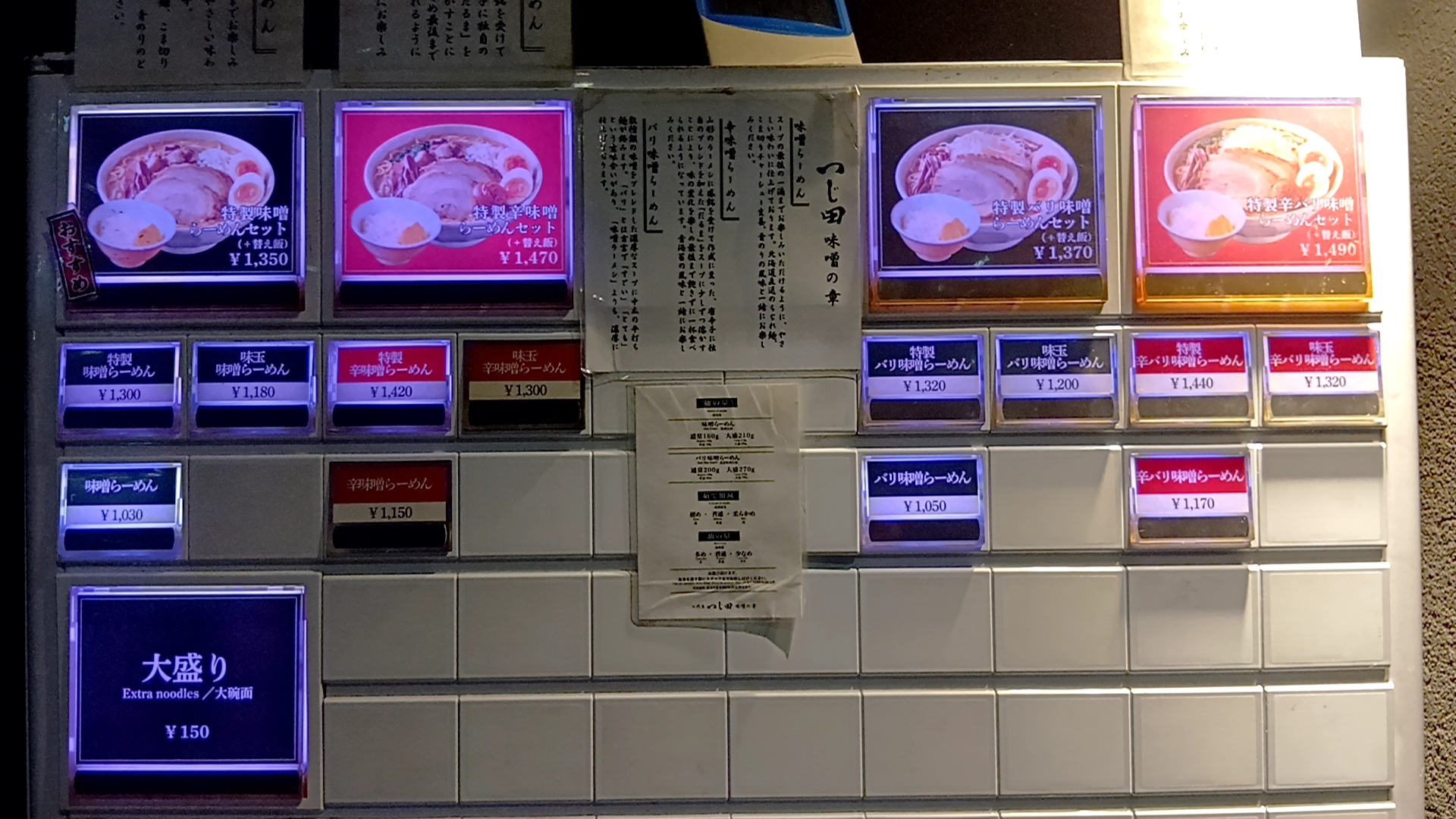 券売機の写真を撮影していたら、後ろに並ばれ煽られて、ダルマ(辛味噌)購入失念!