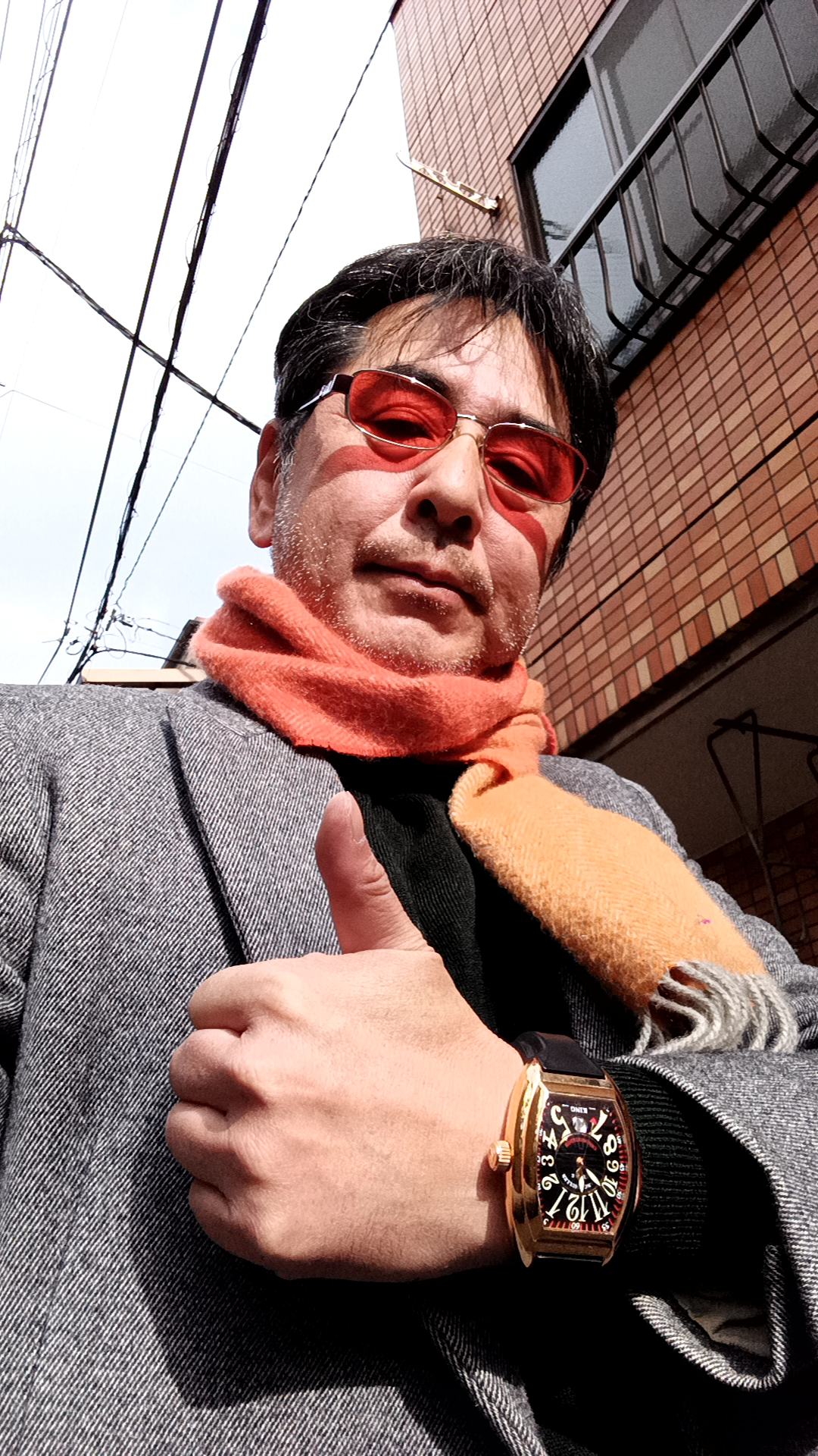 ポール・スミスのオレンジマフラーとチェスター・コート
